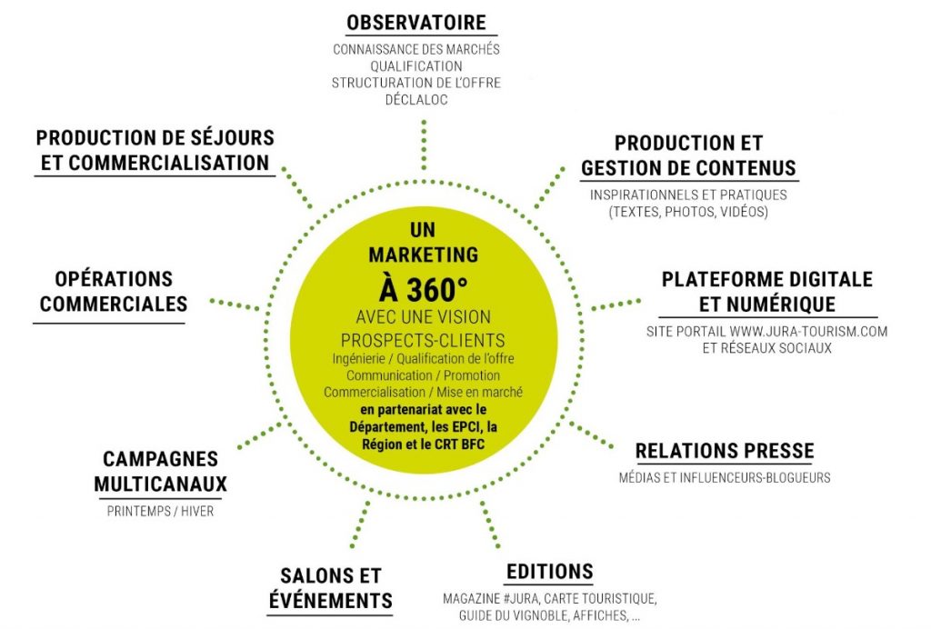 Ces missions sont déclinées en termes de fonctions / métiers visant à répondre aux besoins d’une politique touristique départementale. Ces fonctions / métiers interagissent ensemble en permanence pour la mise en œuvre des actions dans les domaines de la structuration de l’offre touristique, production des séjours, promotion / marketing, mise en marché et commercialisation. De la qualité au quotidien des relations entre ces fonctions dépendent directement l’efficacité et l’efficience des plans d’actions.